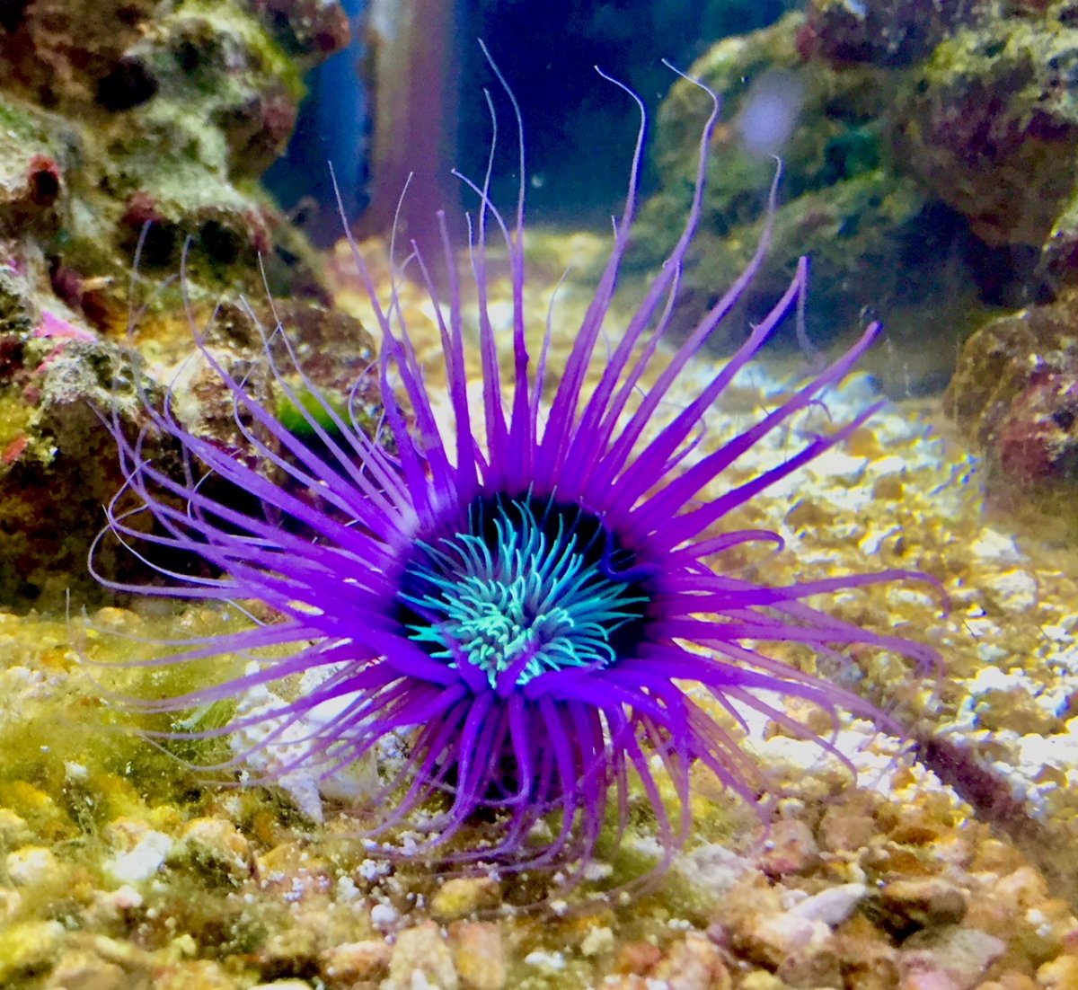 The Tube Anemone, also known as the Tube Dwelling Anemone, is a unique invertebrate that is more distantly related to true sea anemones. It thrives in a soft, deep substrate and is best suited for a reef or species-only aquarium. Its tube is made up of nematocysts it has discharged and comes in varying colors such as tan, pink, purple, or even fluorescent green.
