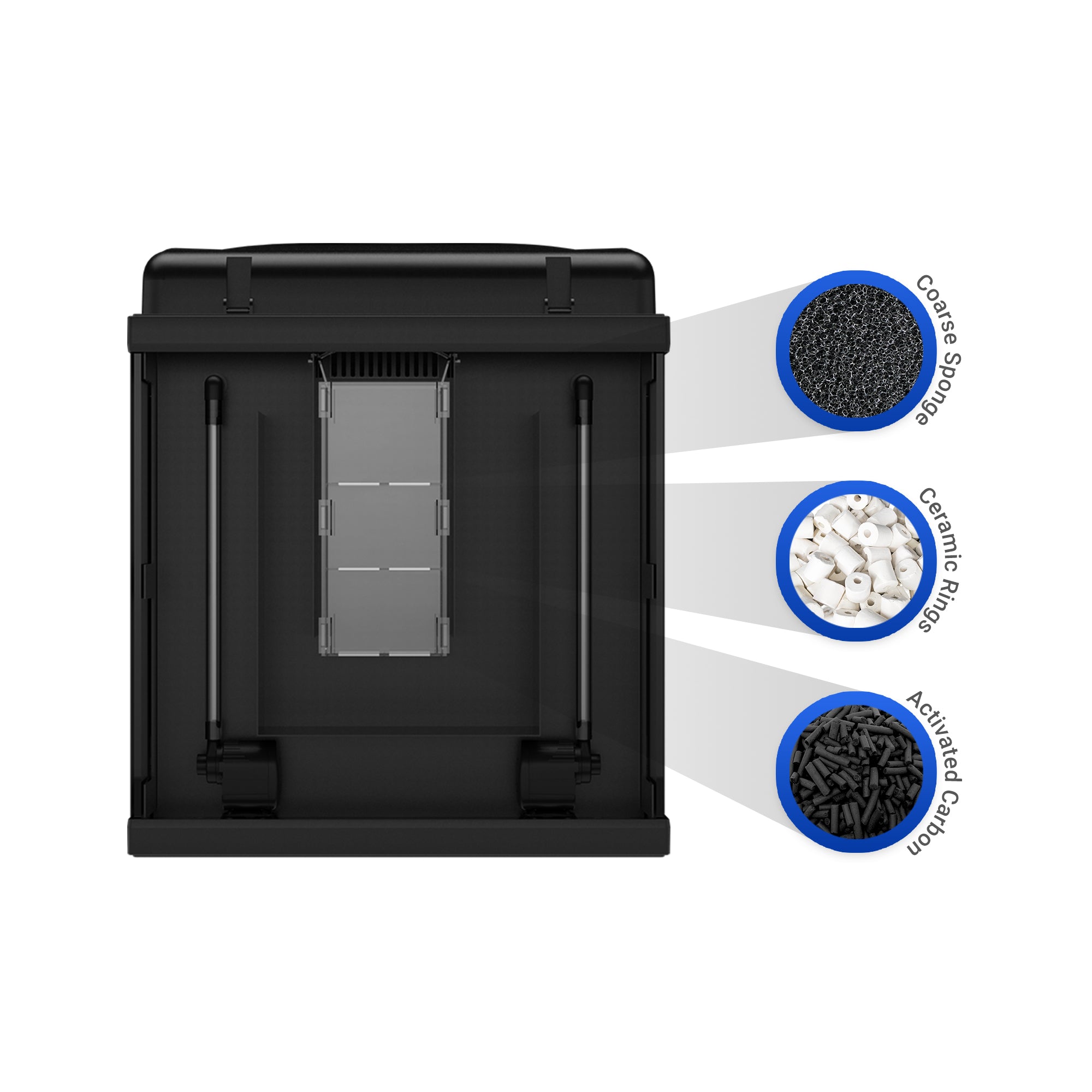 - Mechanical Filtration: Filter Sponge traps free floating particulate matter and debris.