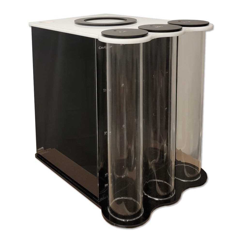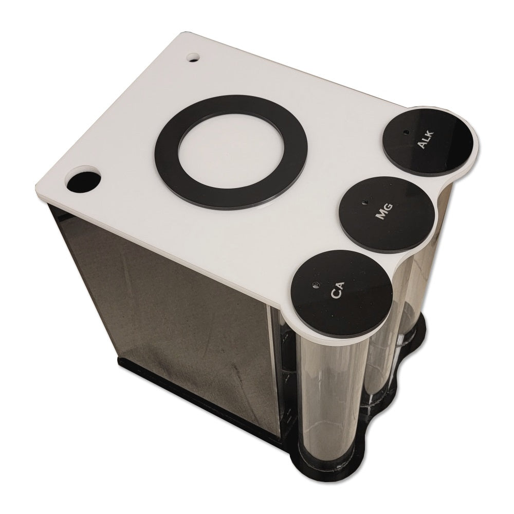 The ATO container holds top off water to help automate the addition of water to your aquarium that is lost from evaporation. Our ATO features a large opening to accommodate any pump size as well as a lid to prevent evaporation. In addition, each ATO comes with (2) 1.5″ hole to feed cords, wires, hosing, and tubing. Every unit comes standard with a black body to prevent algae/bacteria growth and a clear front for water level gauging assisted by laser engraved marks. The perfect ATO container build with hobbyist in mind!