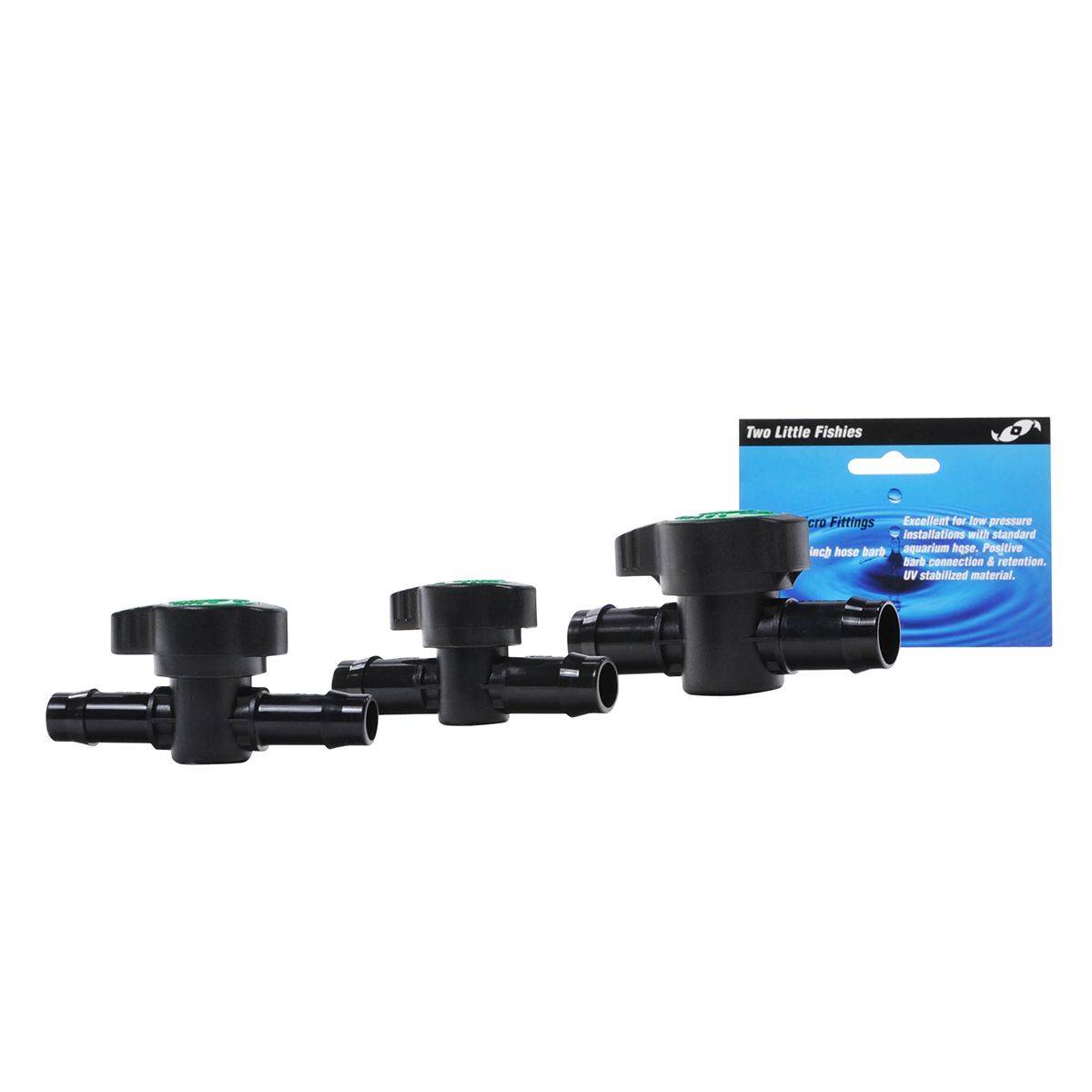 Micro fittings for regulating air flow through standard airline tubing for devices such as air-stones, filters, protein skimmers, ornaments, etc. Also for low-pressure liquid feed lines for metering pumps, fish display holding cubicles, fertilizing systems, calcium reactors, and drip irrigation of water gardens and paludariums. Barbed x Barbed connections.