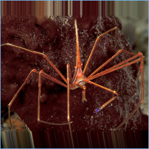 The Arrow Crab, also referred to as the Spider Crab, is characterized by its elongated legs and arrow-shaped body and head. Its size varies with some individuals reaching up to 10 inches, while females may be much smaller. Different species of Arrow Crabs are found in various regions, including the Caribbean, Indo-Pacific, eastern Africa, and California. These crabs usually reside in parts of the reef that are associated with small caves or crevices.