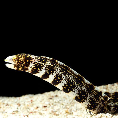 The Snowflake Eel, also known as the Snowflake Moray Eel, Clouded Moray, or Starry Moray, is a strikingly beautiful moray that can be found living in caves and crevices throughout the Indo-Pacific reefs. While in the wild it can reach lengths of up to 39 inches, captive specimens usually grow up to 24 inches.
