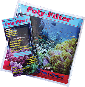 The POLY-FILTER is for filtering and purifying both fresh and salt water aquariums. It is a formulation of a special patented material bonded to a synthetic matrix. By means of a unique proprietary process, the POLY-FILTER is made impervious to salt and is also organic loving to certain materials. It can absorb and adsorb contaminants and other toxic materials found in nature or added to fresh and salt water with or without fish and invertebrates. Medication added to fresh and salt water aquariums for treatment of diseased fish will automatically be removed by the POLY-FILTER after serving their intended purpose before the medication can produce a toxic effect on the fish.
