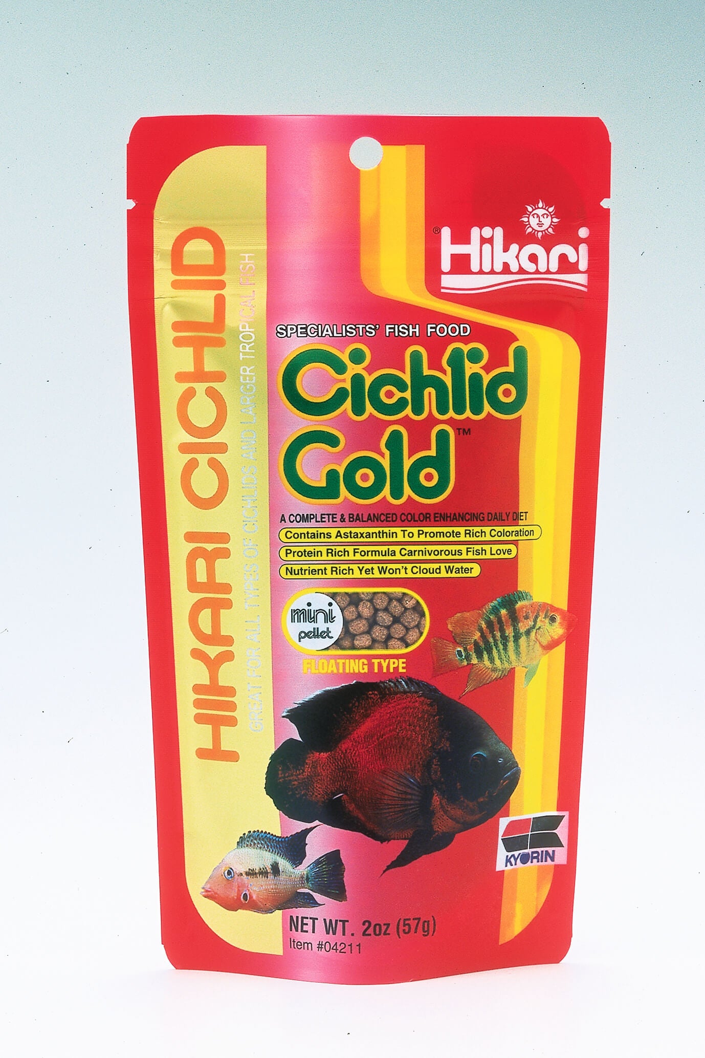 Color enhancing, daily diet for all types of cichlids and larger tropical fish. Great for oscars too! Hikari® Cichlid Gold® contains special color enhancers designed to bring out the natural beauty and proper form. We utilize the highest grade of ingredients formulated in exacting quantities to produce diets that will bring the brilliant colors of your fish to life!