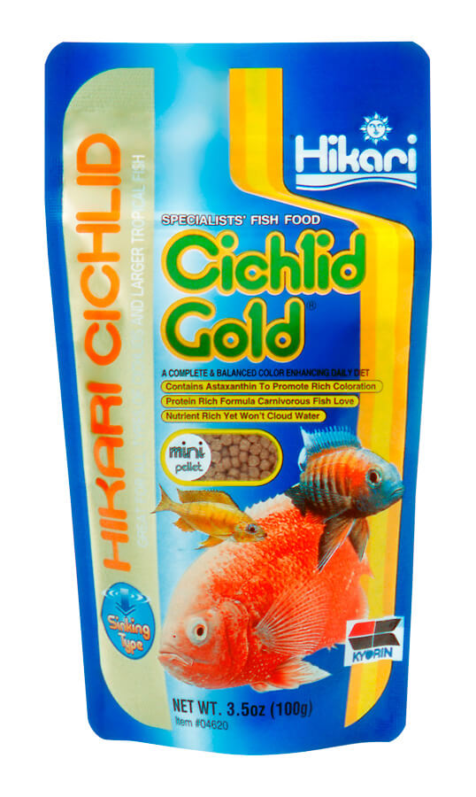 Color enhancing, daily diet for all types of cichlids and larger tropical fish. Great for oscars too! Hikari® Cichlid Gold® contains special color enhancers designed to bring out the natural beauty and proper form. We utilize the highest grade of ingredients formulated in exacting quantities to produce diets that will bring the brilliant colors of your fish to life!