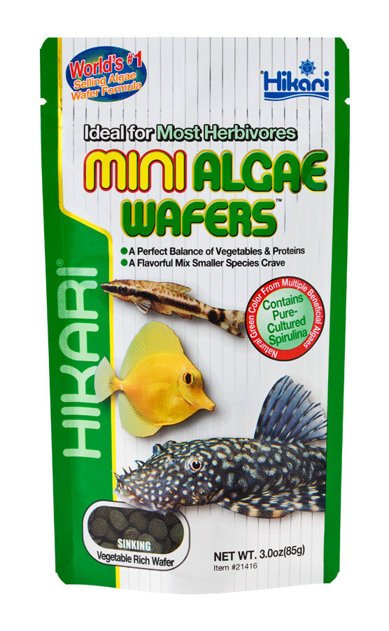Hikari® Tropical Mini Algae Wafers™ is a smaller sized, scientific diet for the hard to feed plecostomus and other algae eating bottom feeders. Accept no substitutes, request the first and finest disc shaped diet for your herbivorous fish!