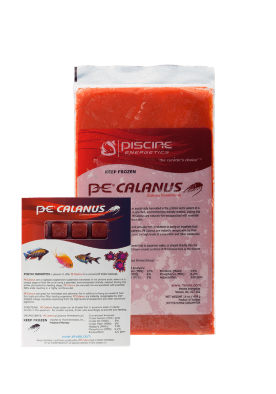 Premium natural nutrition for growth and color enhancement. Nutrient-rich frozen PE Calanus zooplankton is a great source of essential fatty acids as well as astaxanthin and other carotenoid pigments to help support overall health and vivid natural coloration of aquarium inhabitants. Great for freshwater and saltwater fish as well as corals and other filter feeding organisms.