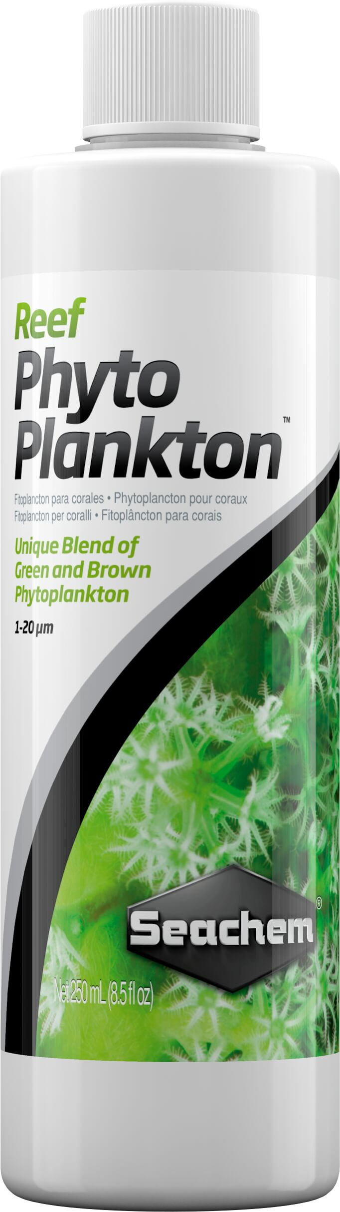 Reef Phytoplankton™ is a concentrated blend of green and brown marine phytoplankton designed to provide the essential fatty acids, proteins, vitamins, amino acids, with biological carotenoids for invertebrate diet. Size ranges from 1-20 μm to feed a broad range of tropical marine aquarium filter feeders and invertebrates.