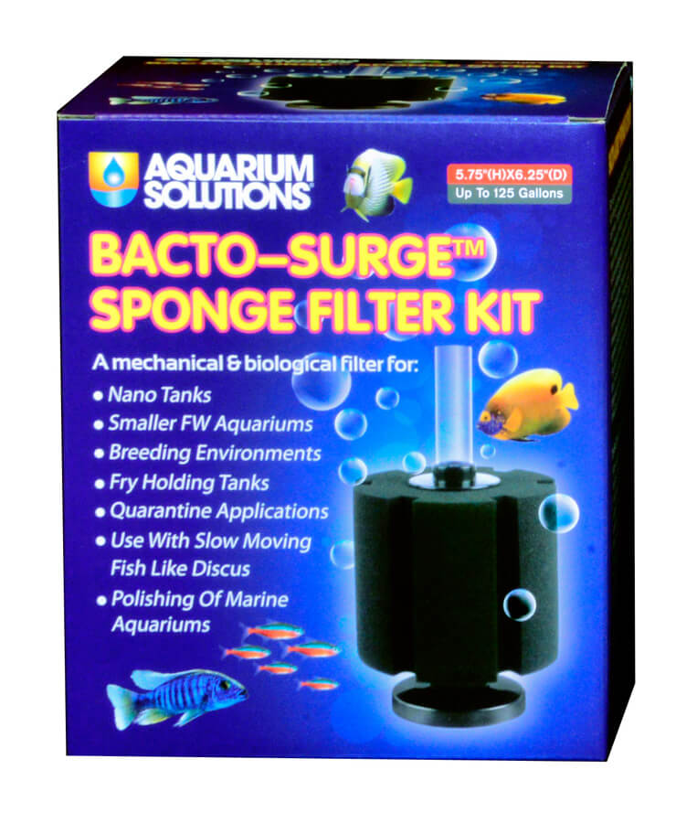 Bacto-Surge® Biological Action Filters are air-driven sponge filters (air pump not included) which offer superior mechanical and biological filtration of your aquarium water. The highly porous sponge contains extreme surface area and thousands of microscopic pores where aerobic bacteria, hydrated with oxygenated water, can grow and flourish.