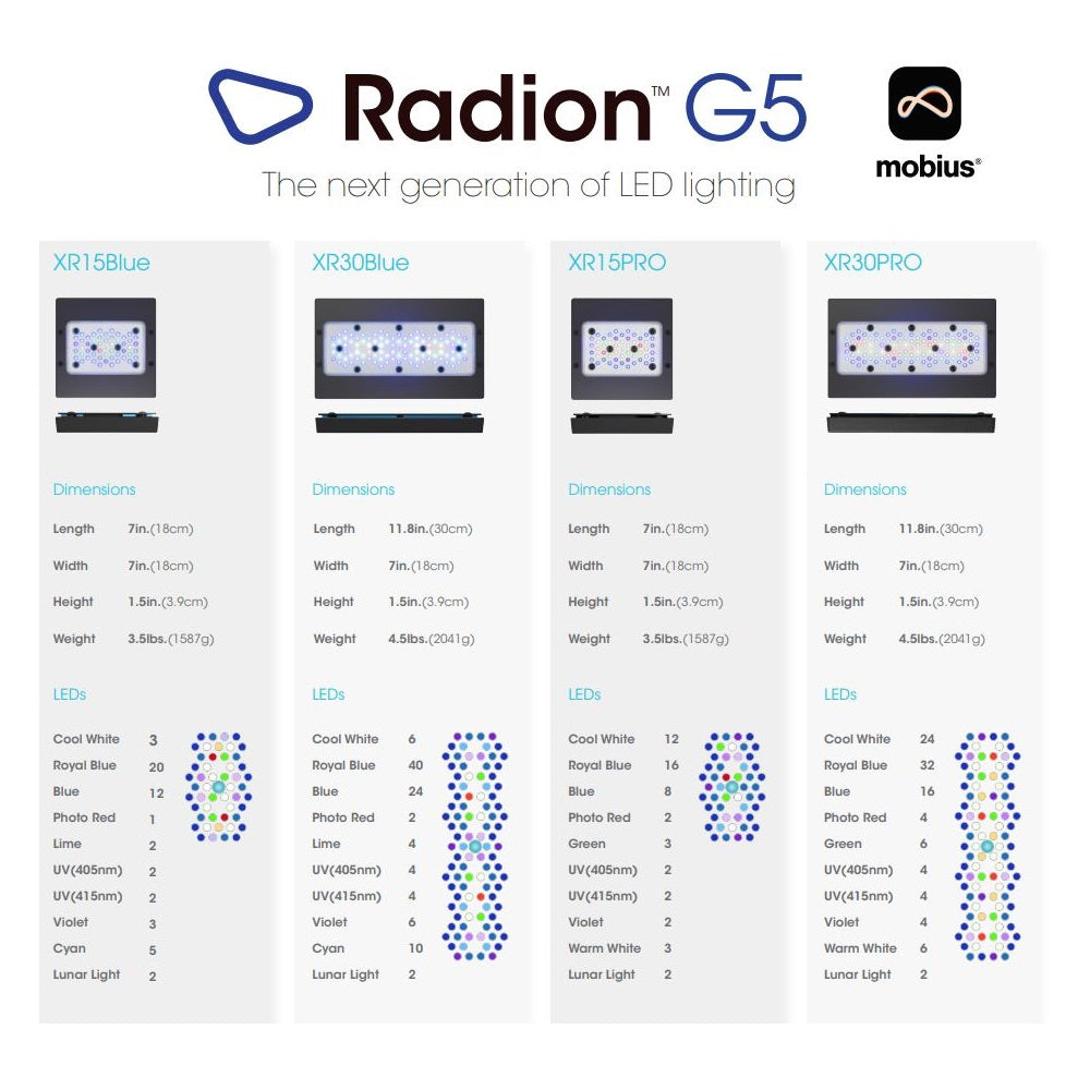 Next Level Color - Color from the G5 is impressive. Blue or Pro, XR15, or XR30 coral will pop. G5 brings speed of growth, intensity of fluorescence, and nuance of color rendition to new heights. Crafted with the best LEDs, the optimized output from next-generation HEI Optics, and more color channels, Gen 5 is in a class of its own.