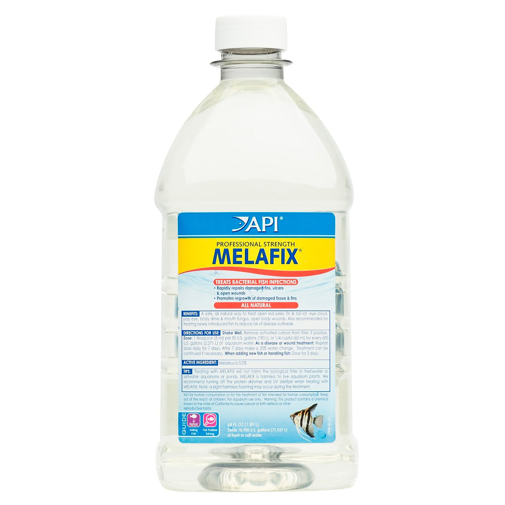 API MELAFIX Freshwater Fish Bacterial Infection Remedy soothes the transition from store to home by reducing the risk of your fish developing a disease. The fish you bought may already carry a disease. Disease is often difficult to detect, particularly in its early stages. Treat bacterial infections in your fish and reduce the risk of spreading illness to other fish with API MELAFIX Freshwater Fish Bacterial Infection Remedy. Bacterial diseases are caused mostly by dirty aquarium conditions and the addition of infected fish. Fish that are injured and have open wounds are especially susceptible, even in seemingly clean tanks. Bacterial infections, like fin and tail rot, eye cloud, pop eye, body slime and mouth fungus destroy tissue and other organs, and if left untreated, can cause death. API MELAFIX Freshwater Fish Bacterial Infection Remedy is an all-natural antibacterial treatment that heals open wounds, treats bacterial infections and promotes re-growth of damaged fins and tissue, usually within a week. Just add 5 ml per 10 gallons of aquarium water. It will not adversely affect the biological filter, alter the pH or discolor the water. For effective treatment, dose infected fish daily for 7 days, and continue afterward if necessary. Dose new fish daily for 3 days. Remove activated carbon from filter before use, if possible.