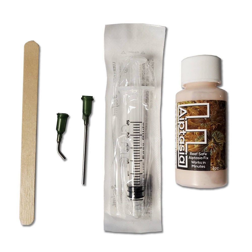 Turn off all power heads. Using the included syringe, apply F-Aiptasia directly on to aiptasia anemone and completely cover it! Leave power heads off for 30 minutes or until product hardens. After several hours, F-Aiptasia will create a 'shell' over the anemone and trap it with the caustic product inside the shell. This robs the anemone of the ability to release reproductive spores in the aquarium!