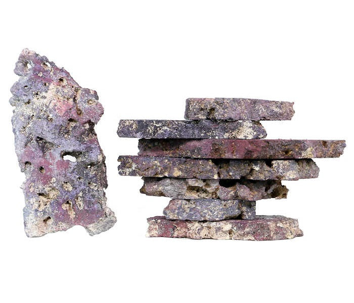 These natural porous calcium carbonate rocks are sliced on two sides to create ledges, platforms, and caves, and are perfect for fragging corals of all sizes. Flatz can also be used to design interesting substructures, rock footers, and sandless substrate beds by tiling in across the tank bottom. Each box contains a variety of sizes from about 2 inches to upwards of 10 inches. LifeRock Flatz have coralline algae coloration.