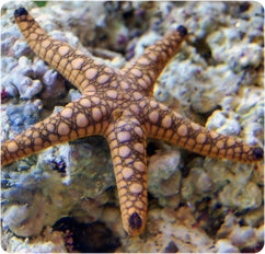 In its natural habitat, the Tile Sea Star can be found on sandy substrates, among rocks, and occasionally climbing on anemones. With a constant appetite for micro-organisms and detritus, it thrives in aquariums with ample live rock to support its feeding habits. While it typically prefers a solitary lifestyle, in larger aquariums, it can coexist with others of its own species.