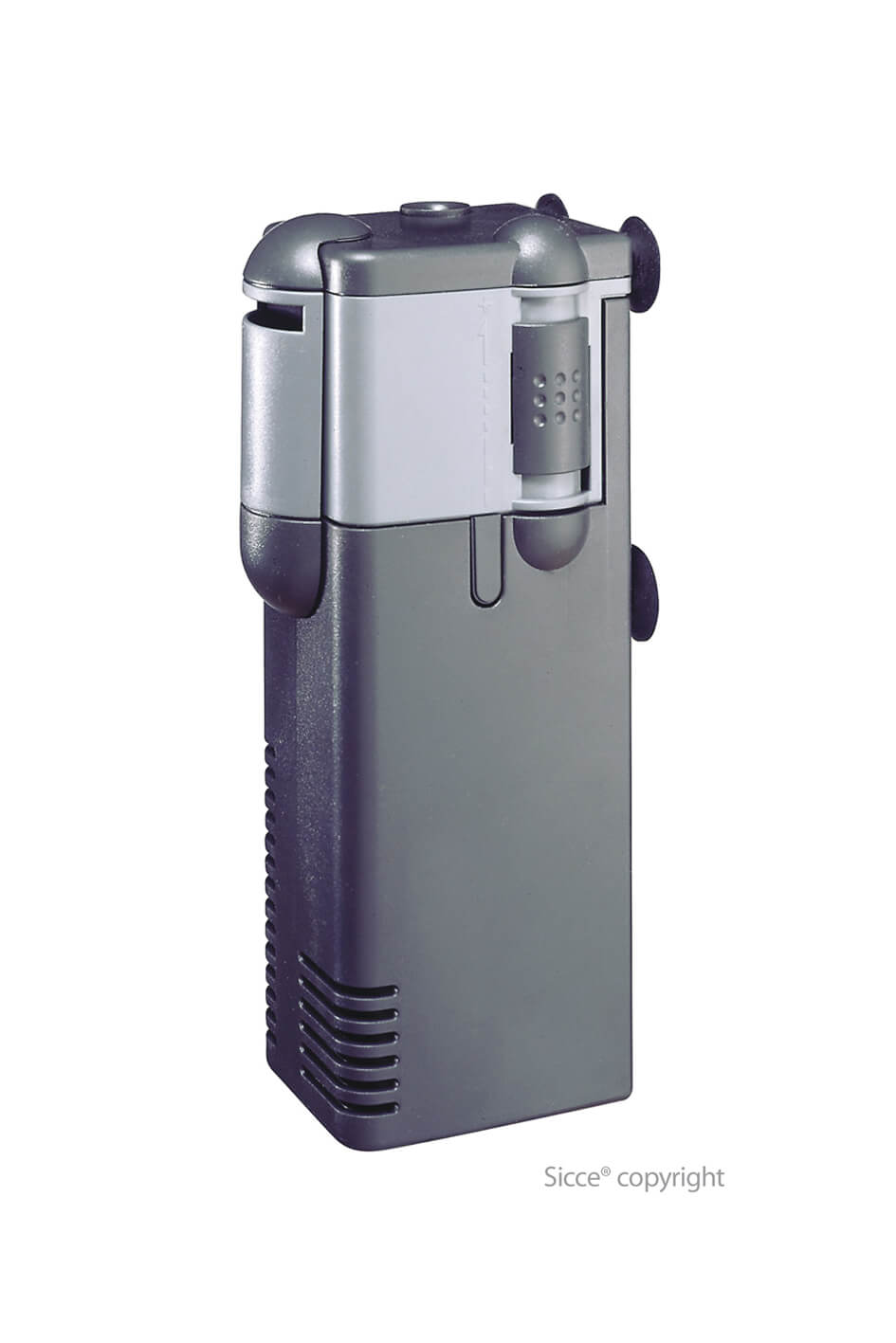 The Micron internal Filter for aquariums with a flow rate of 53gph and tank capacities from nanos up to 20 gallons and is fitted with a floating rotor system, integrated with an antiwear device and an exclusive water flow control system which allows filtering to be adjusted on the basis of the volume of water in the aquarium.