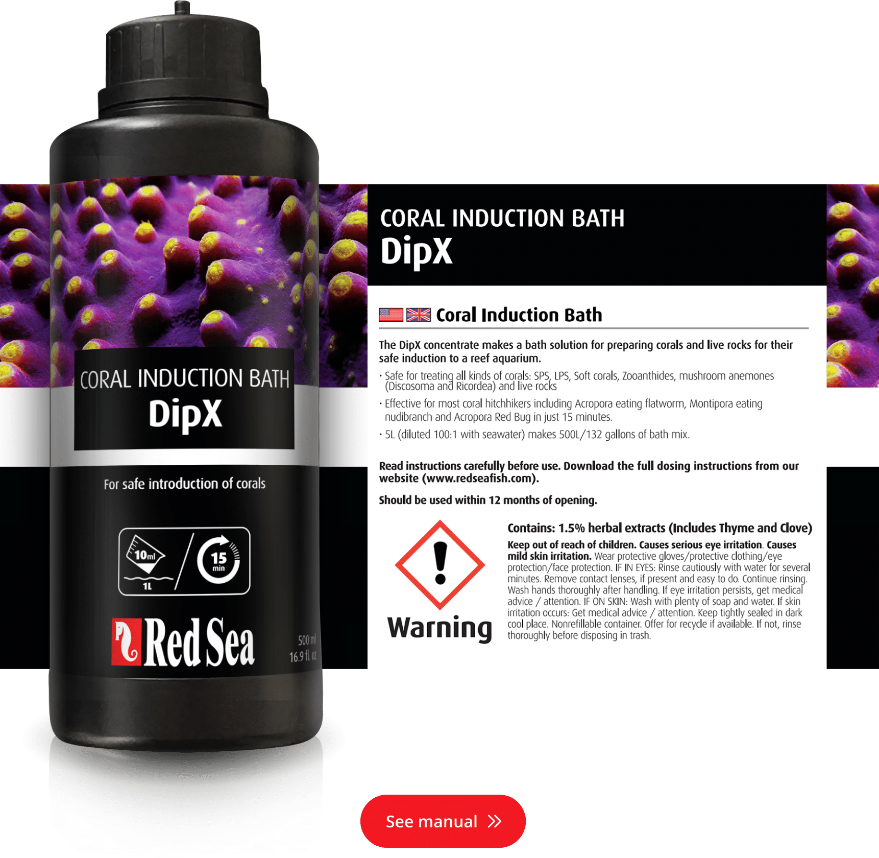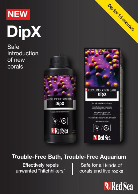 A simple 15-minute bath in DipX before placing a new coral in the aquarium will drive away unwanted “hitchhikers”, thereby maintaining the safety of your reef.