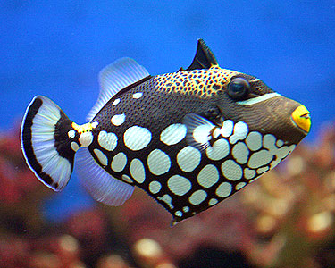 The Clown Triggerfish boasts a stunning and eye-catching coloration, making it highly sought after for home aquariums. In the wild, this species can be found in both inner and outer areas of reefs, where it searches for shellfish and other invertebrates as part of its diet.