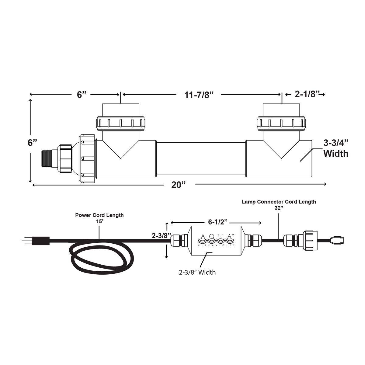 The Classic 57 watt UV is the premium choice for water sterilization of ponds/aquariums from 1500 to 2500 gallons eradicating bacteria and creating a healthy environment. The Aqua Ultraviolet Classic 57 Watt can also be used as a clarifier to remove free floating algae for bodies of water up to 3500 gallons with 50% to 75% plant coverage. Simply put Aqua Ultraviolet Classic 57 watt UV sterilizer will clear you water in 3 to 5 days, sometimes over night, and keep it that way.Specifications Dimensions: 20" X 4" X 2 1/2" Weight: 5 LBS Sterilizer Maximum Flow Rate: 3200 GPH Clarifier Maximum Flow Rate: 3250 GPH Fresh water application: 1500-3000 Salt water application: 355 Num of Lamps 1 Additional Specification: